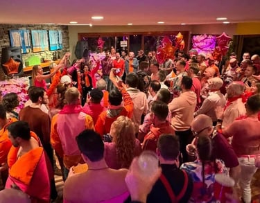 Thanks to a brilliant crew of co-conspirators, our traditions took shape- from pink and orange attire to upside down fir trees and other unique rituals.