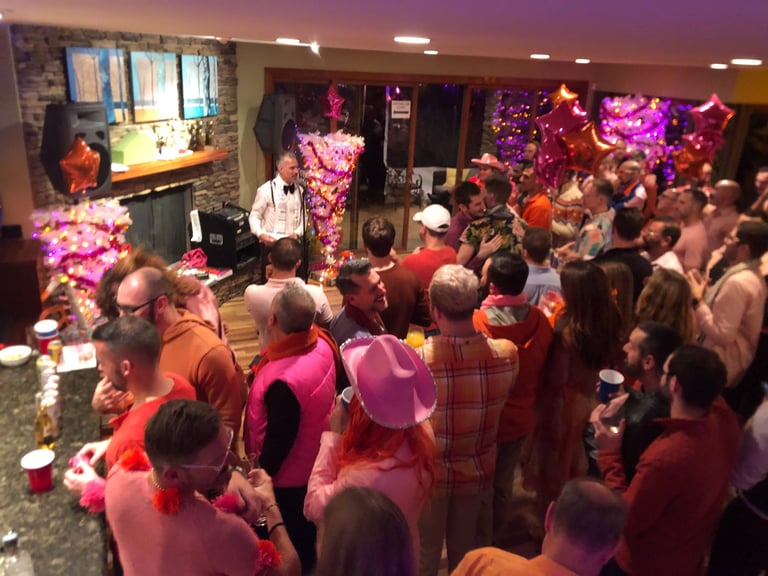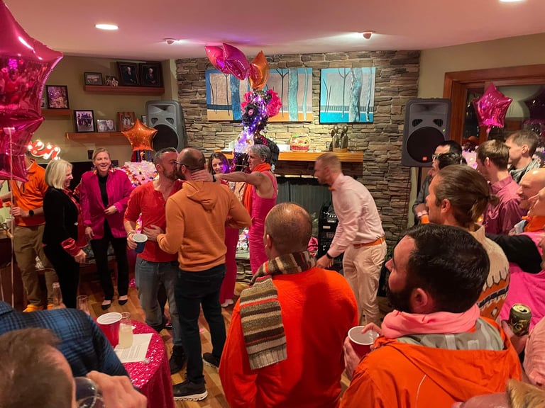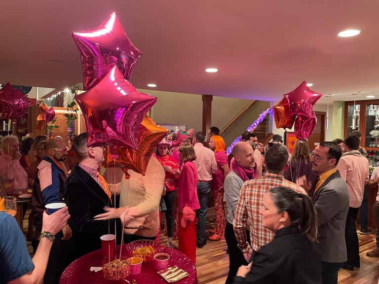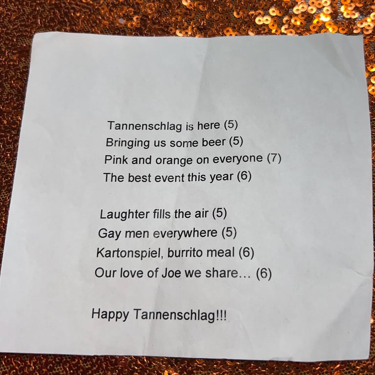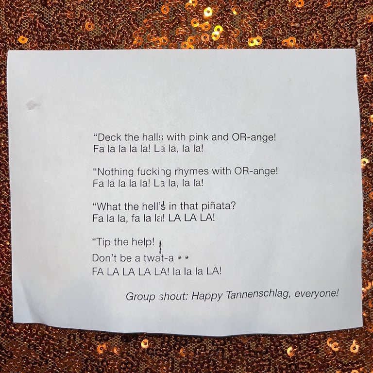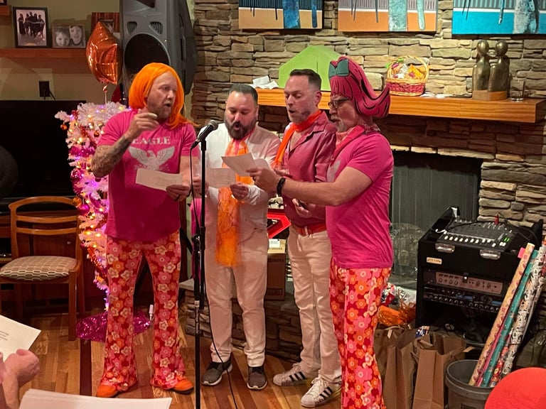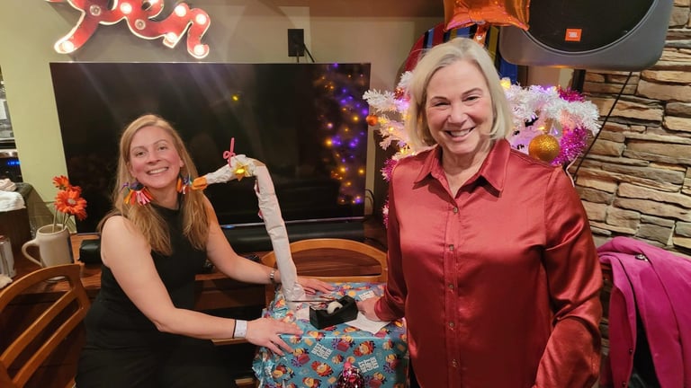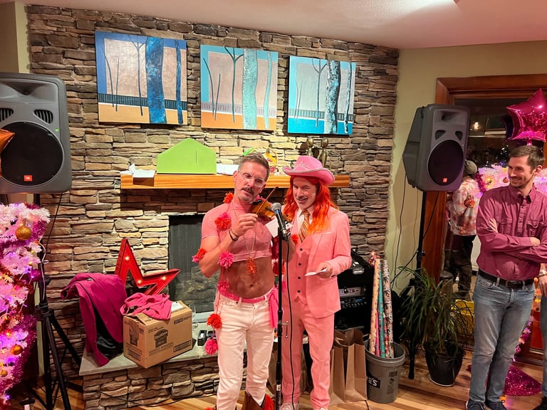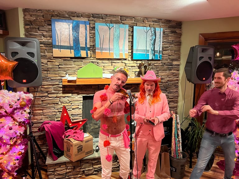 After the first year, guests really sank their teeth into dressing the part and bringing the live performances. The theme was Mexican, complete with a piñata and all-you-can-eat Chipotle. New this year was Kartonspiel game of competitive gift wrapping; 6 teams of 2 people wrapped had to use materials supplied by the host...little did they know they were wrapping the host's actual holiday gifts!