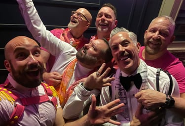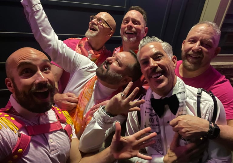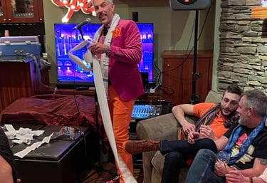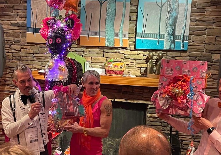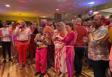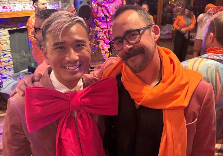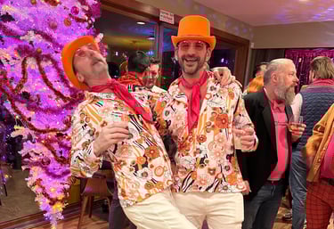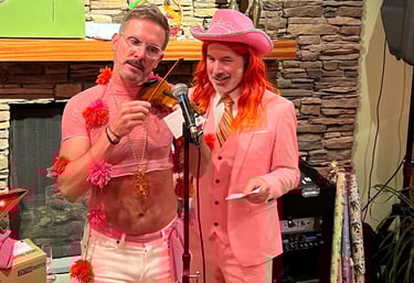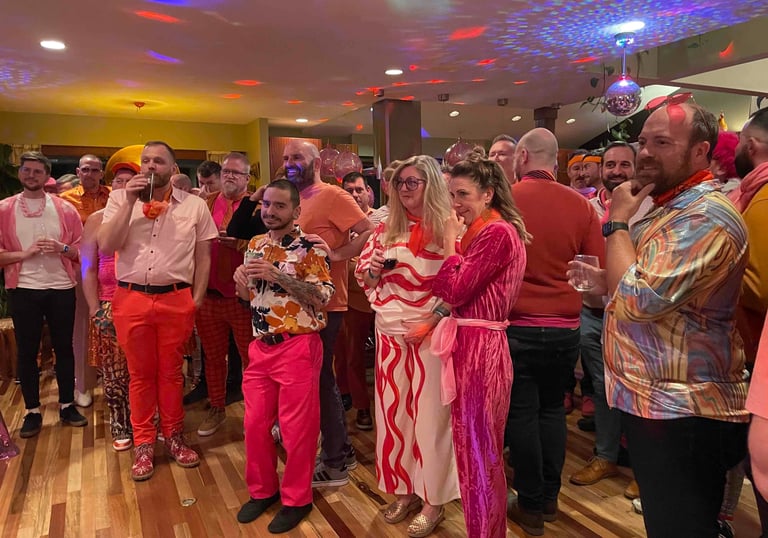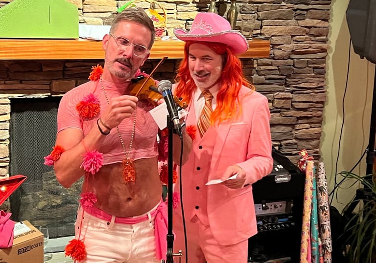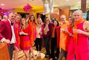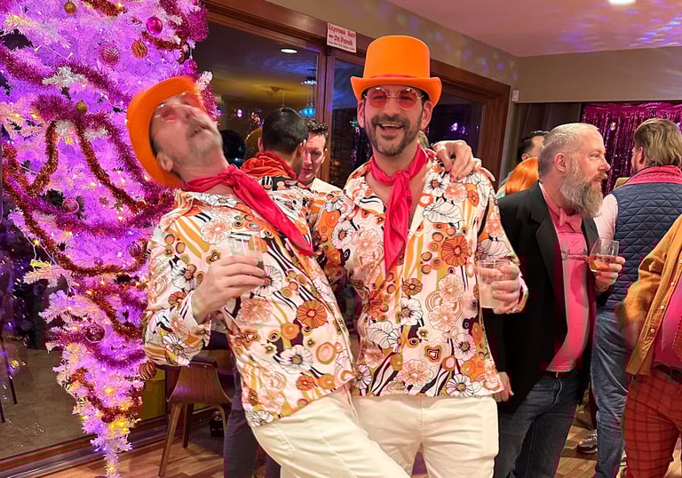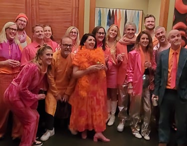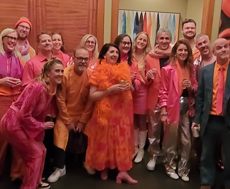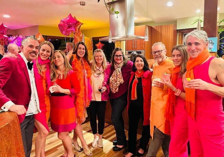Wear all hues of pink and orange. Neckwear of any variety is required. Bonus points for dressing on theme.