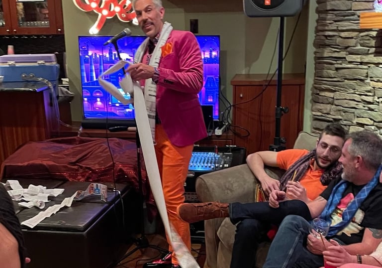 The only requirements are the haiku/song open mic, the white elephant gift exchange, and thanking your delivery drivers. The rest is up to you. Past ideas included Die Mülliste longest shopping receipt competition and Kartonspeil games of competitive package stacking and gift wrapping. The important thing is to inform your guests in advance for maximum participation!